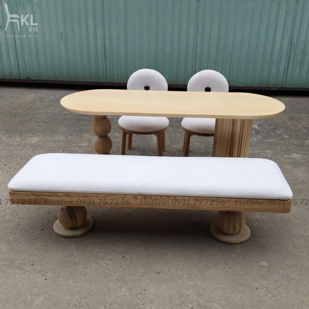 - Chất liệu: Ghế gỗ Ash tự nhiên sơn PU hoàn thiện bọc vải. Bàn khung gỗ Ash tự nhiên sơn PU hoàn thiện.