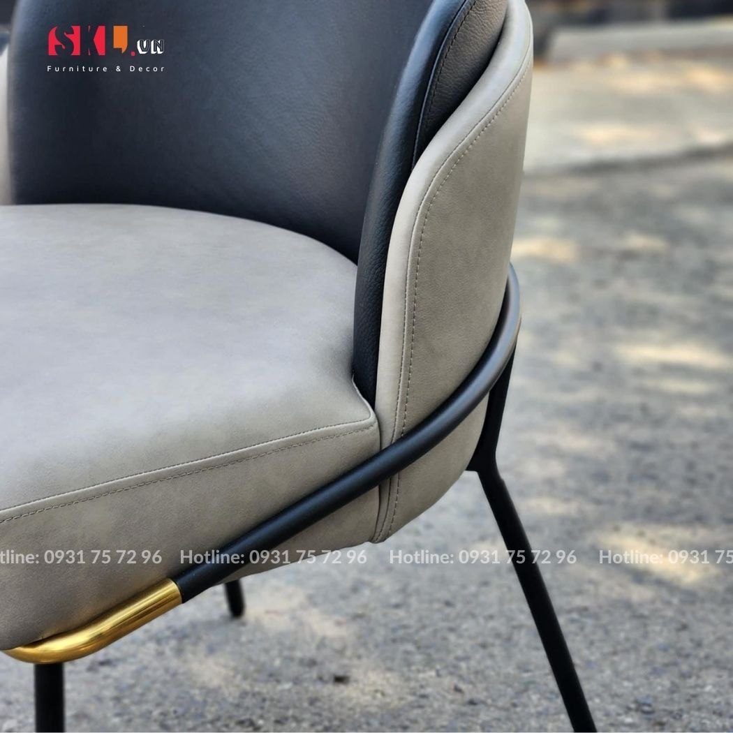 - Chất liệu: Khung thép sơn tĩnh điện, ốp bọc inox mạ PVD màu vàng trang trí. Tựa lưng bọc da Microfiber hoặc vải tương tự.