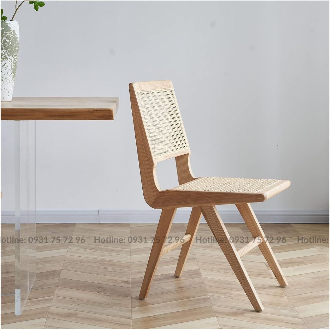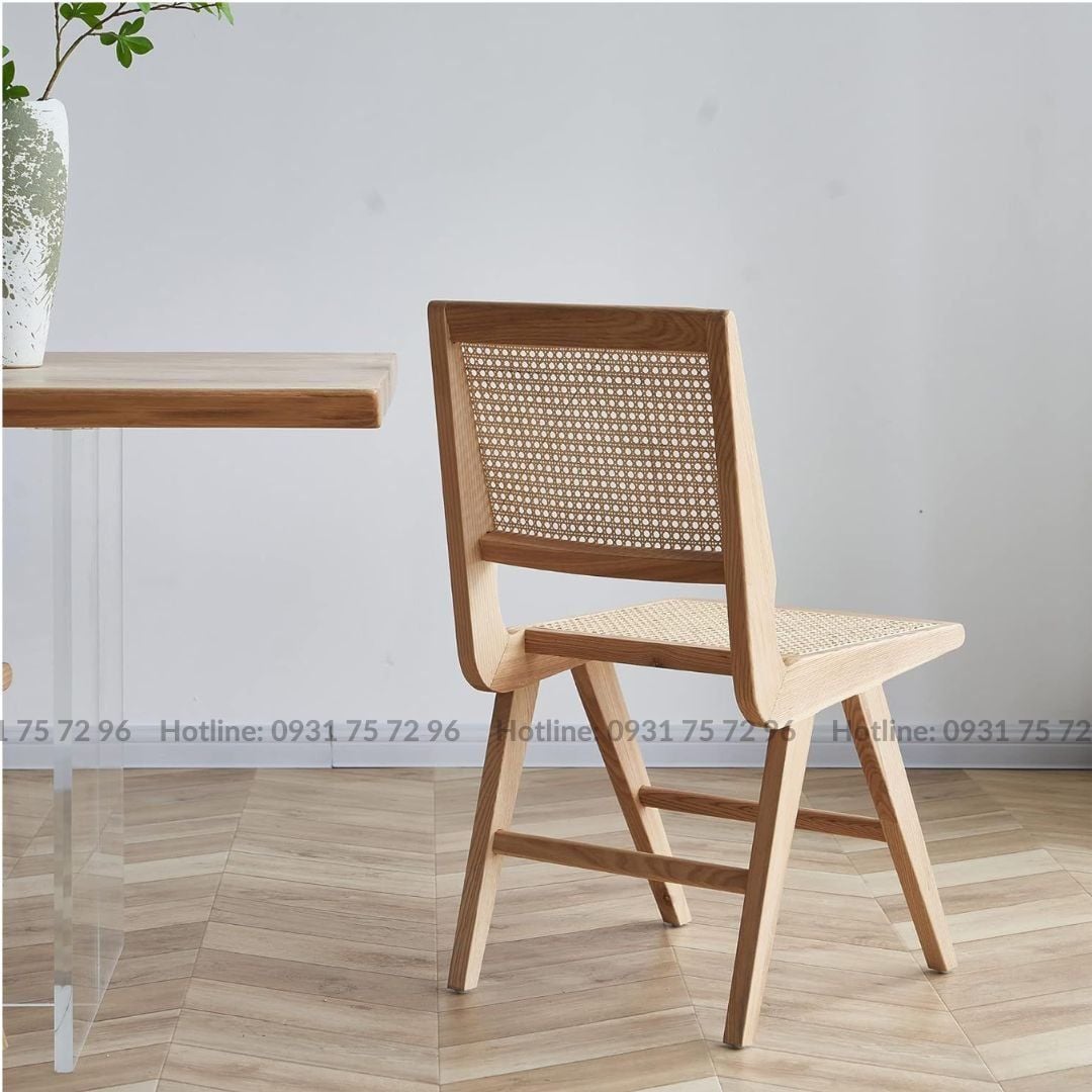 - Chất liệu: Khung gỗ Ash tự nhiên sơn PU hoàn thiện, đan mây mắt cáo.